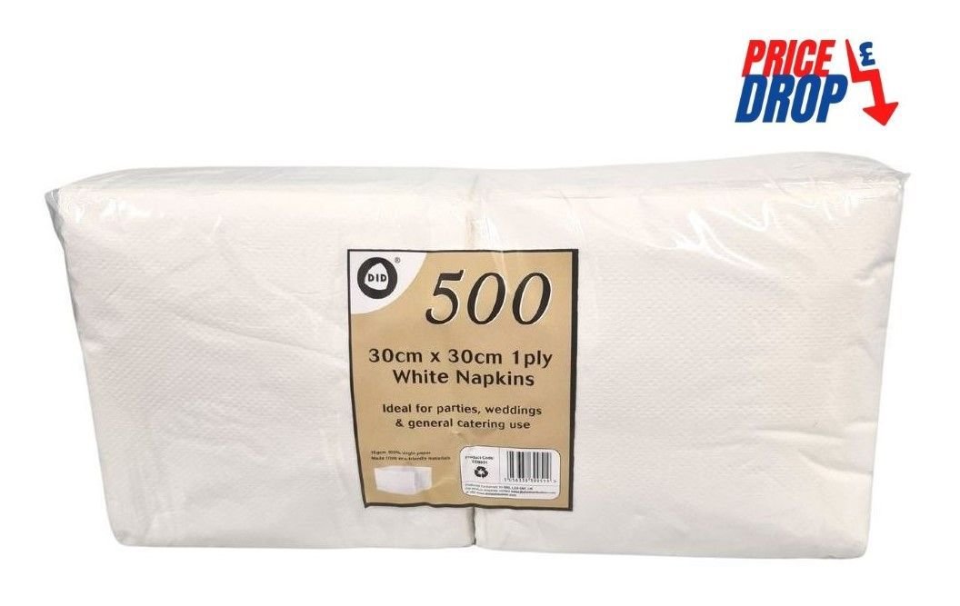 500pc 30cm x 30cm 1ply white napkins quantity