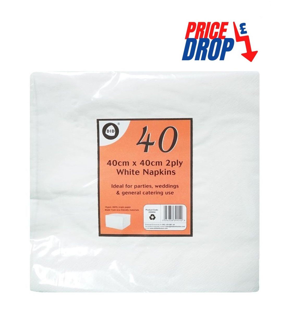 40pc 40cm x 40cm 2ply white napkins