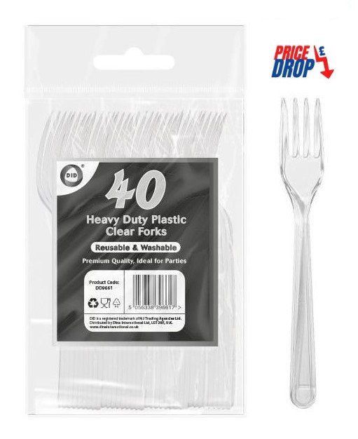 40pc reusable heavy duty plastic clear forks