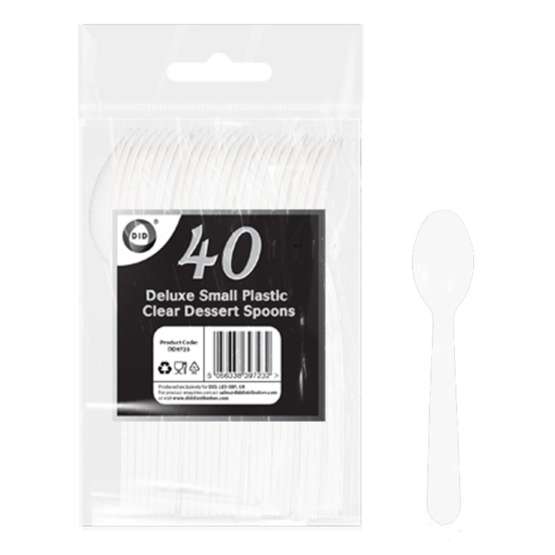 40pc reusable deluxe small plastic clear dessert spoons