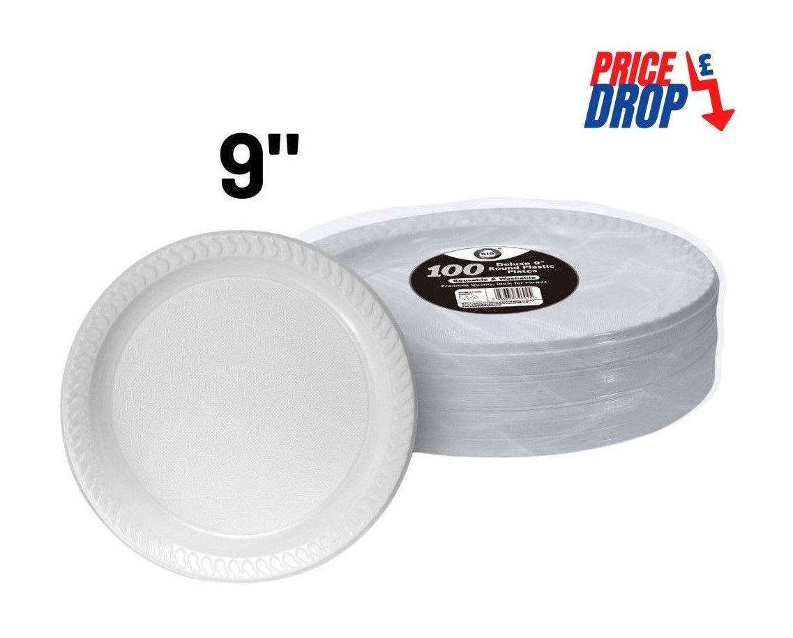 100pc reusable deluxe 9" round plastic plates quantity