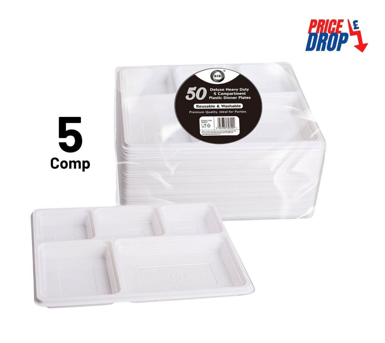 50pc reusable deluxe heavy-duty 5 compartment plastic dinner plates quantity