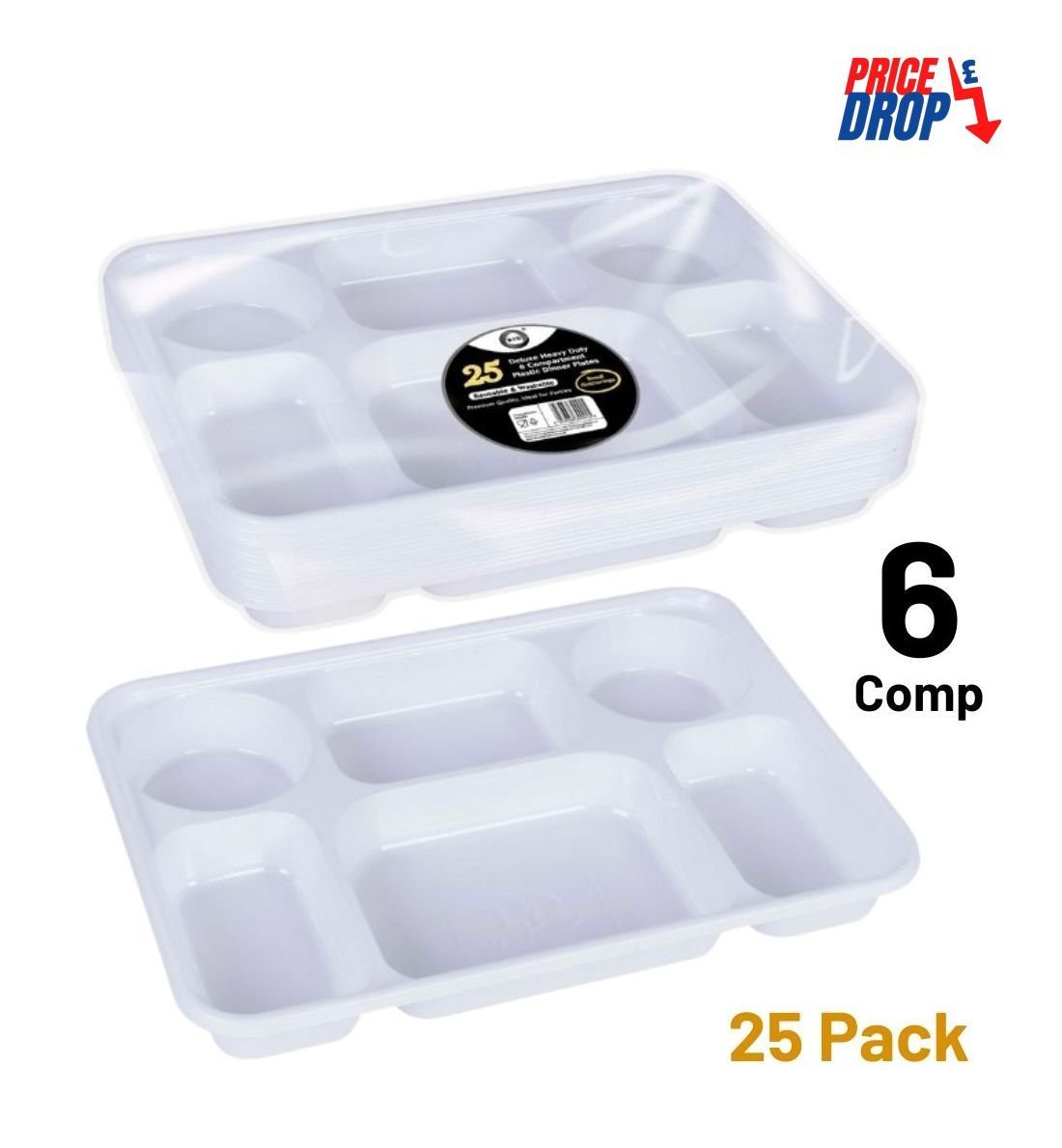 25pc deluxe heavy-duty 6 compartment plastic dinner plates