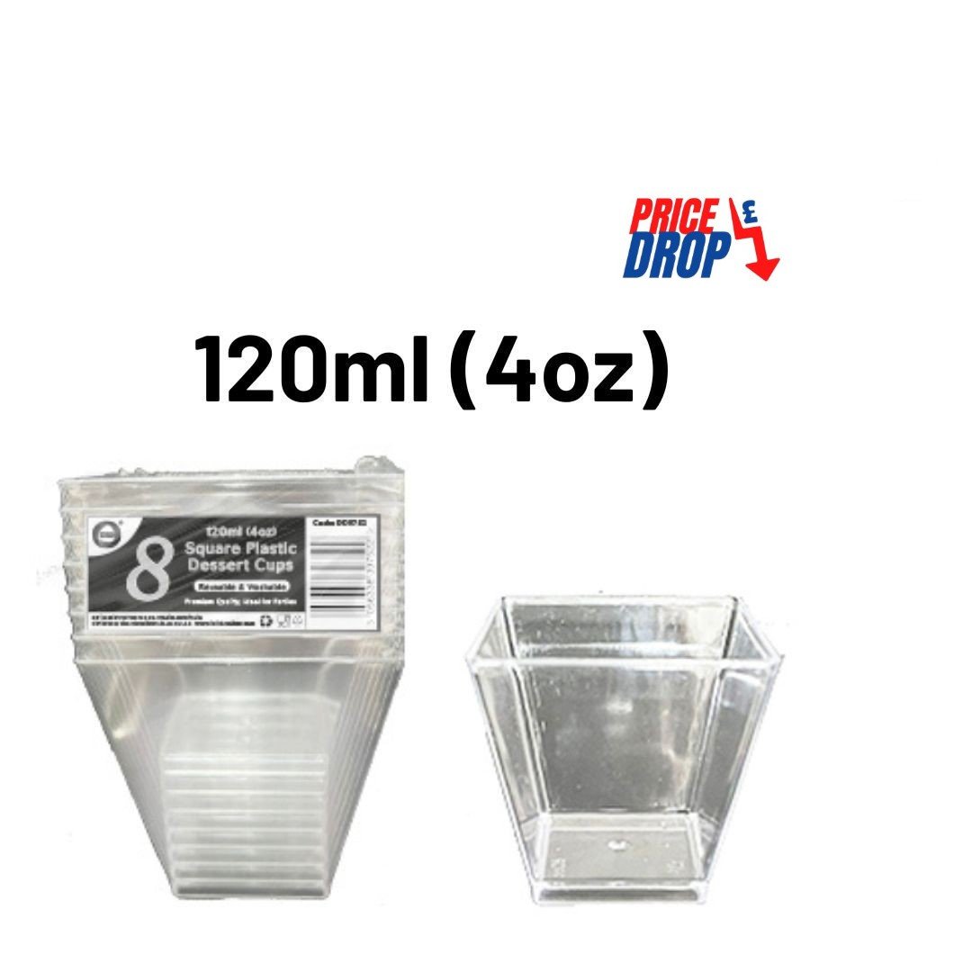 8pc reusable 120ml (4oz) square plastic dessert cups