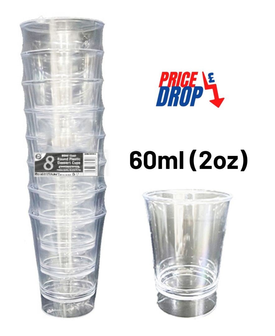 8pc reusable 60ml (2oz) round plastic dessert cups