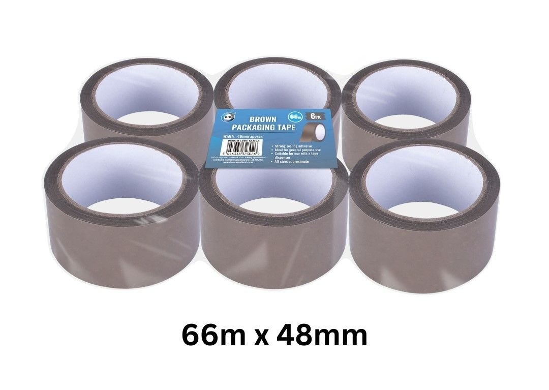 6pc 66m x 48mm brown packaging tape